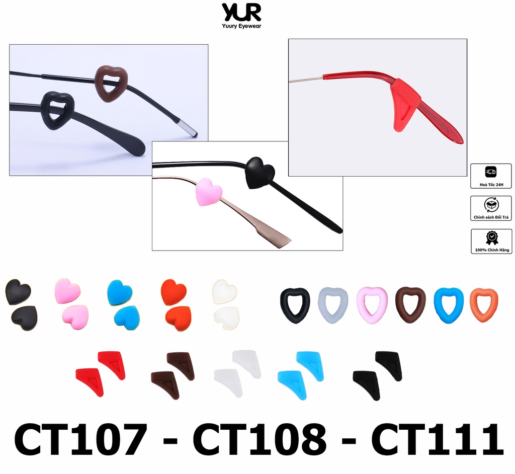 [CT107 – CT108 – CT111] 1 Cặp Cài Silicon chống tuột cố định mắt kính thiết kế trái tim tiện lợi khi chơi thế thao
