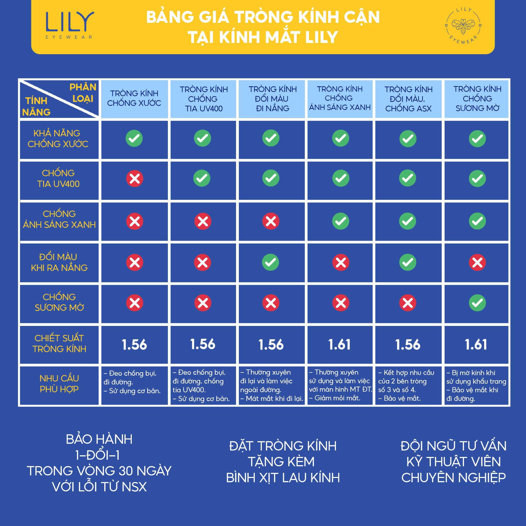 – Kính mắt Lily chịu trách nhiệm bảo hành kính mắt trong vòng 7 ngày kể từ ngày cắt kính