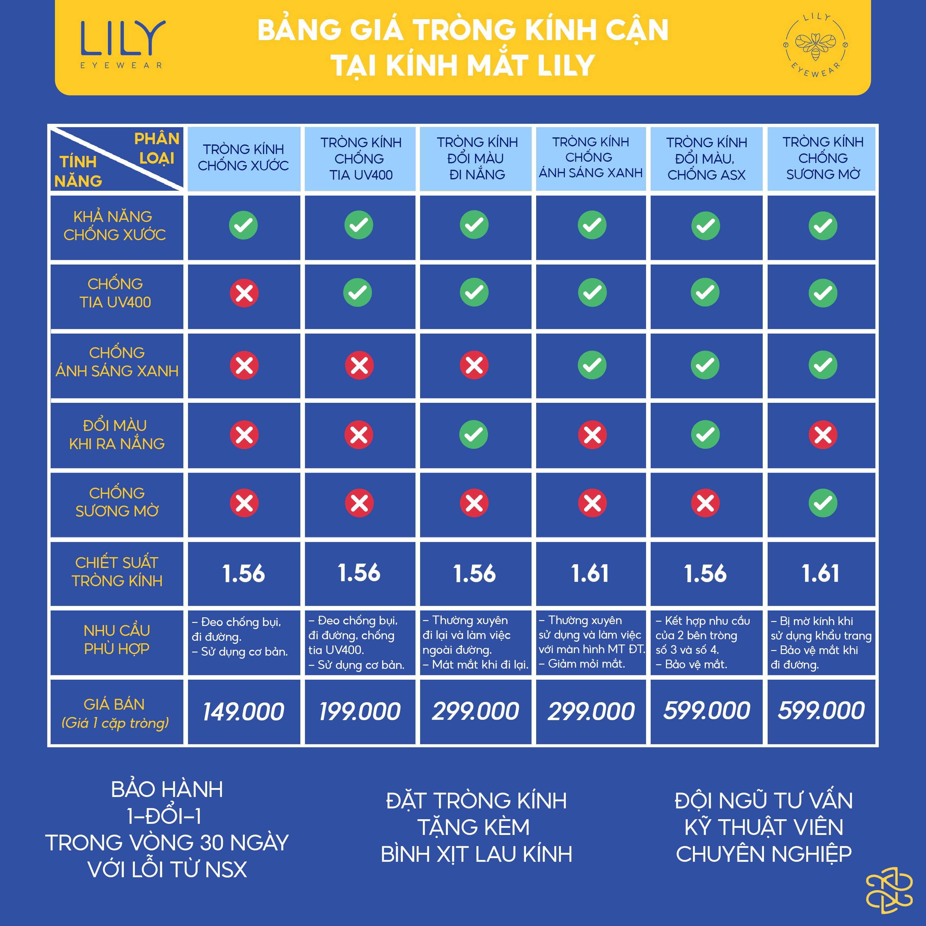 – Kính mắt Lily chịu trách nhiệm bảo hành kính mắt trong vòng 7 ngày kể từ ngày cắt kính